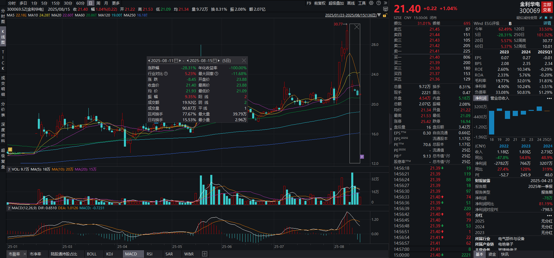 二级市场方面,近一周金利华电累计跌幅超28%。